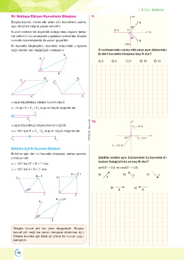 α açısı büyüdükçe bileşke kuvvet küçülür. F = 12 N