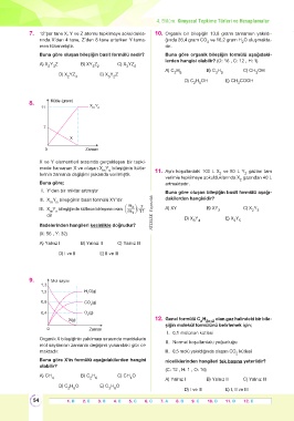 rında X’den 4 tane, Z’den 8 tane artarken Y tama- ğında 26,4 gram CO ve 16,2 gram H O oluşmakta-