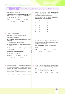 3. X CO (k) + 2HCl(suda) ¡ 2XCl(suda) + CO (g) + H O(s) 6. CH ve C H gaz karışımının 30 litresini tamamen