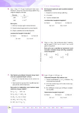 6. X(g) + 2Y(g) m XY (g) Tepkimesinin farklı sıcak- 8. Bir kimyasal tepkimede sabit sıcaklıkta katalizör