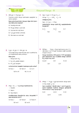 3. 2X(g) + Isı m Y(g) denge tepkimesinde; Aynı sıcaklıkta 1 litrelik kaba 1 mol HI gazı ko-