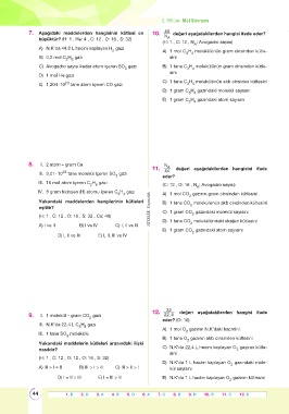 7. Aşağıdaki maddelerden hangisinin kütlesi en 10. N değeri aşağıdakilerden hangisi ifade eder?