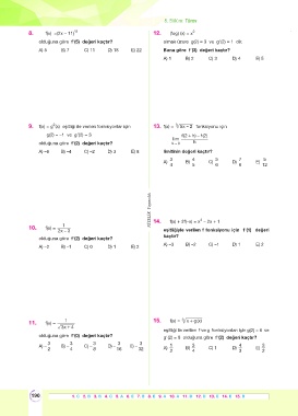 9. f(x) = g (x) eşitliği ile verilen fonksiyonlar için 13. f(x) = 3 5 x – 2 fonksiyonu için