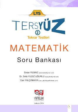 MATEMATİK Soru Bankası Sinan YILMAZ (sinanmaths@gmail.com) Dr. Sefa YILDIZ UĞURLU (syugurlu@gmail.com) Can YALÇINKAYA (can_yalcinkaya@hotmail.com) An ka ra 2016 I