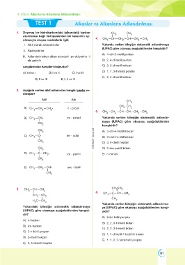 TEST 1 Alkanlar ve Alkanların Adlandırılması