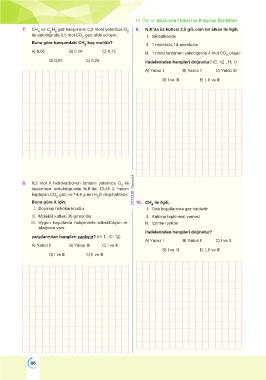 7. CH ve C H gaz karışımının 0,3 molü yeterince O 9. N.K’da öz kütlesi 2,5 g/L olan bir alkan ile ilgili;