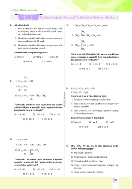 TEST 1 Alkollerin Fiziksel - Kimyasal Özellikleri ve Kullanım Alanları - I