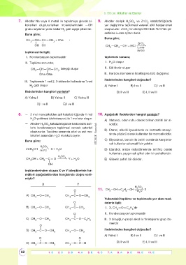 8. — 2 mol monoalkolden asit katalizörlüğünde 1 mol 10. Aşağıdaki ifadelerden hangisi yanlıştır?