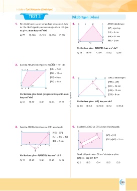 3. Şekilde ABCD dikdörtgen ve [CE] açıortaydır. 6. Şekildeki ABCD ve EFKL birer dikdörtgendir.