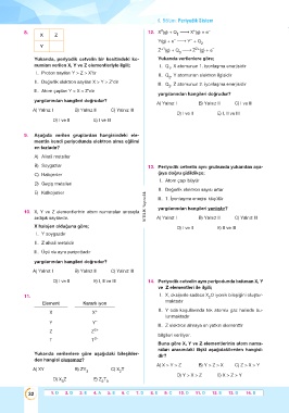 Yukarıda, periyodik cetvelin bir kesitindeki ko- Yukarıda verilenlere göre;